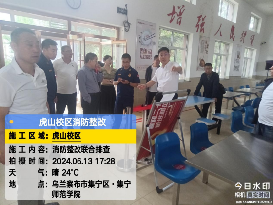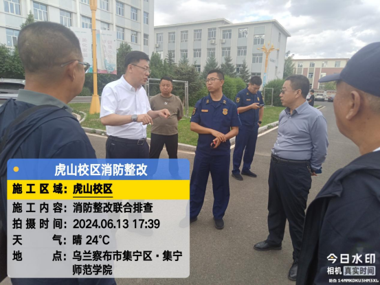 6月13日,世界杯官网党委委员、副校长拓俊杰一行与消防部门联合排查虎山校区消防整改工作。