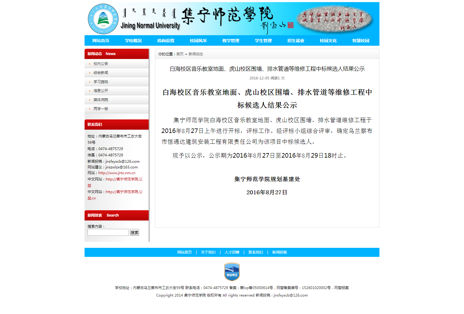 白海校区音乐教室地面、虎山校区围墙、排水管道等维修工程中标候选人结果公示-2026世界杯官方合作网站