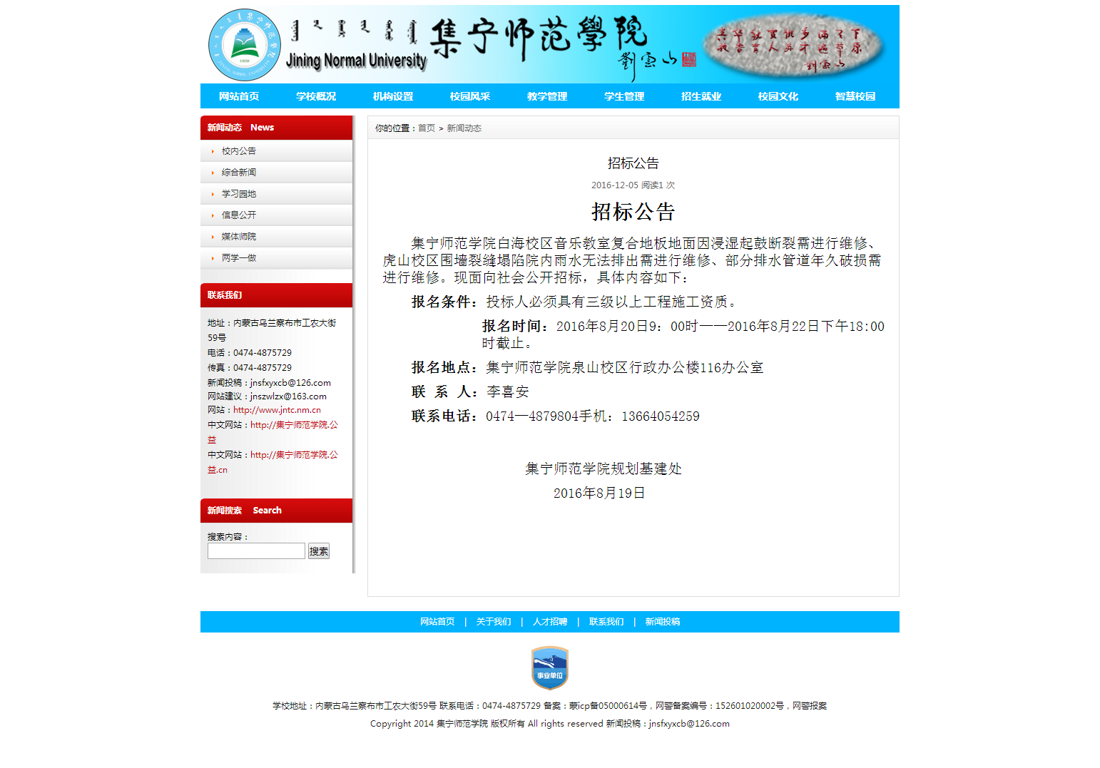 招标公告-2026世界杯官方合作网站白海校区音乐教室地面、虎山围墙、家属区排水管道