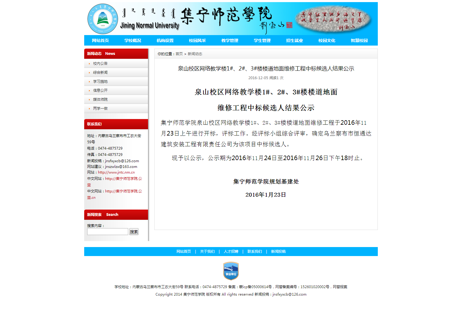 泉山校区网络教学楼1#、2#、3#楼楼道地面维修工程中标候选人结果公示
