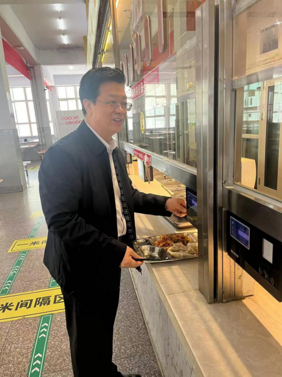 朱玉东实地查看了餐厅的经营情况和饭菜质量,与后勤基建处餐厅管理人员深入交流。随后,来到自选餐档口,排队刷卡取餐,与同学们同桌就餐,询问饭菜是否可口、价格是否满意,并嘱咐同学们要均衡饮食、注意营养搭配、践行“光盘行动”。