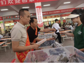 绿杨带雨垂垂重,五色新丝缠角粽。2023年的端午节如期而至,为弘扬传承中华传统节日文化,让在校师生度过一个“粽”意十足的端午节。6月20日,在校党委的大力支持下,后勤基建处餐饮服务中心在泉山校区餐厅内举办了“争做文明校园集师人,践行光盘行动我光荣”专题活动。