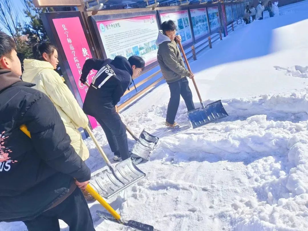 凛冽的寒风中,全体学生支部党员拿着铁锹、除扫铲、扫帚等工具,铲的铲、扫的扫,大家分工有序、配合默契、干劲十足,对逸夫楼前通往主教楼、网教楼以及主教楼通往行政楼的道路积雪进行清扫,一个个忙碌的身影形成了雪天里一道靓丽的风景线,劳动的热情和团结的力量温暖了整个冬日。