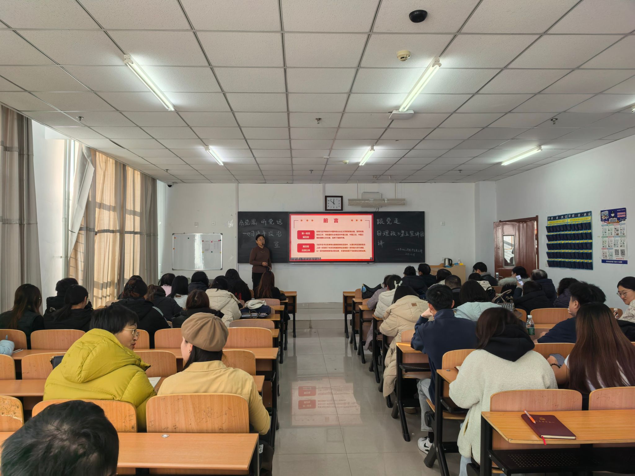 宣讲中,吴红杏老师紧扣主题,围绕四个核心内容展开系统讲解。在坚持目标引领方面,阐释了全面建设社会主义现代化国家、推进中华民族伟大复兴的时代意义与实践路径,鼓励师生将个人理想融入国家发展大局。针对坚持理论创新,重点解读了马克思主义中国化时代化的最新成果,强调其对中国式现代化建设的引领作用,启发师生用创新理论指导学习科研。