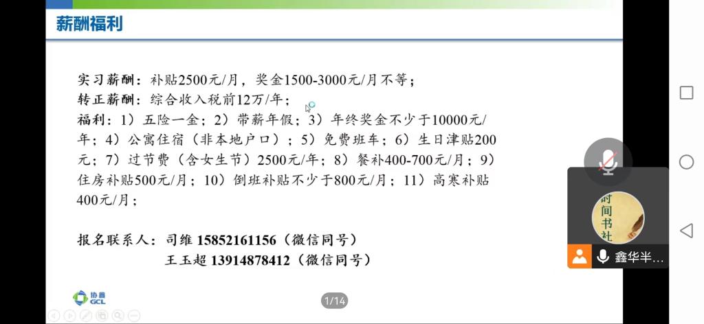 为了更好地拓宽毕业生就业渠道,10月16日,化学与化工学院与江苏鑫华半导体科技股份有限公司,通过腾讯会议举办2023届毕业生双向选择招聘会。2019级化学1、2班,2019级应用化学1班,2021级专升本应用化学1班,有一百位学生参加了本次招聘会。