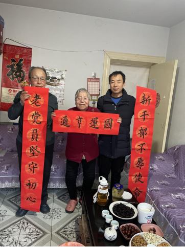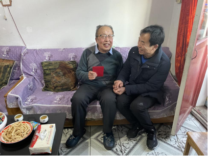 焦俊亮代表学院详细询问了老党员的身体和生活状况,表达了学校、学院对他们的关心,了解了老党员的精神文化生活。攀谈中和他们共同感悟在中国共产党的领导下,国家和人民艰苦奋斗所取得的伟大成就。共同分享了学校近年来发生的变化。祝福他们晚年生活幸福,生体健康。同时,为老党员送去了春联和慰问金,将党组织的关怀送到他们身边,被看望的老党员们深受感动。