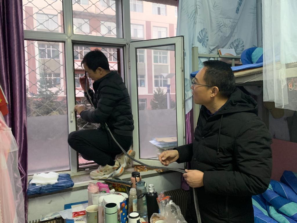 寒潮无情人有情。今年入冬以来,大雪、寒流席卷乌兰察布地区,气温剧降,寒气逼人。2021年11月20日,化学与化工学院个别宿舍学生在书记院长“我为群众办实事”“急难愁盼”热线上反映,宿舍窗户存在透风漏气现象。化院领导班子高度重视,及时研究对策,思考解决问题的办法,通过走访问询,实地考察,认为用胶条密封窗口边缘最为有效。于是,学院购置了大量密封胶条,并于2021年11月23日下午,由书记院长亲自组织学工办、班主任等相关人员,带着准备好的密封胶条,深入男女学生公寓楼,亲自动手为学院学生宿舍窗户粘贴密封条,这一行动让广大学生感到十分暖心。