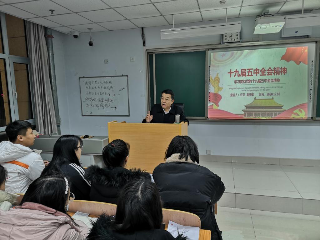 12月18日晚上,泉山校区逸夫楼生命科学学院209教室,校党委委员、副校长许卫根据学校党委关于党政干部为联系班级宣讲党的十九届五中全会精神有关工作要求,深入生命科学学院、化学与化工学院,为联系班级宣讲党的十九届五中全会精神。