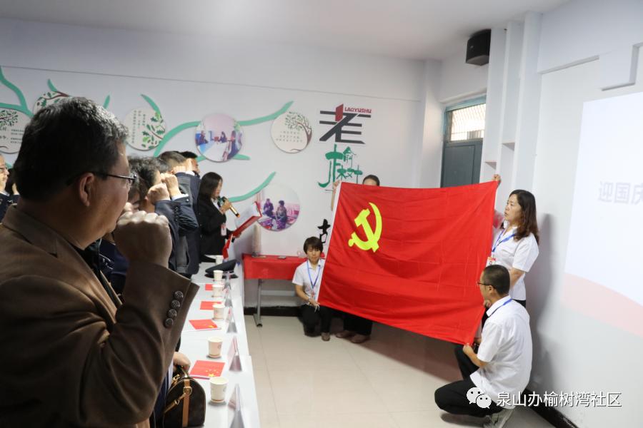 全体党员高举右拳,在榆树湾社区联合党委书记乔丽英带领下,用铿锵有力的声音再次面对鲜红的党旗,通过重温入党誓词的方式,重忆入党初心,铮铮誓言是光荣的共产党人不变的追求。