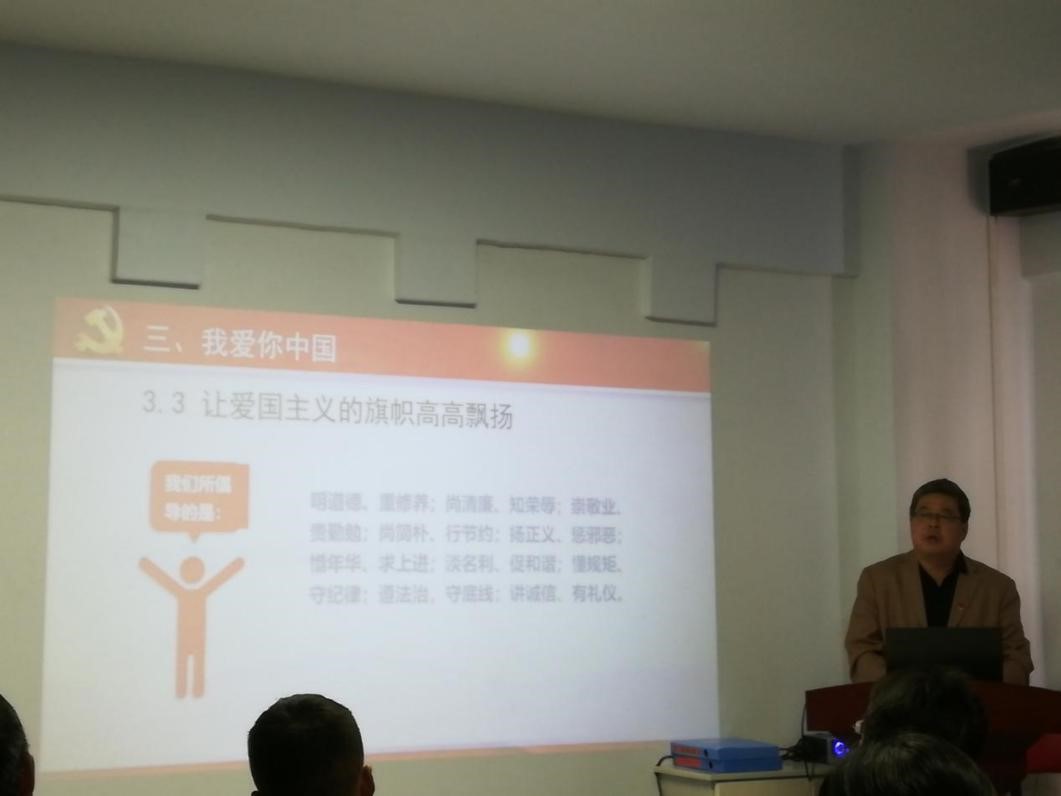 在重温誓词高涨情绪的推动下,党日活动进入主题党课环节,内蒙古集宁一中党委书记张文亮为大家带来《我爱你中国》主题党课,张书记从“新中国”、“具有悠久历史的中国”、“我爱你中国”三个方面,用幽默的语言为大家讲解了不同时期的中国,以及新时期的我们应该如何爱国,让大家再次受到精神上的洗礼,并坚定了“我爱你中国”的信念。