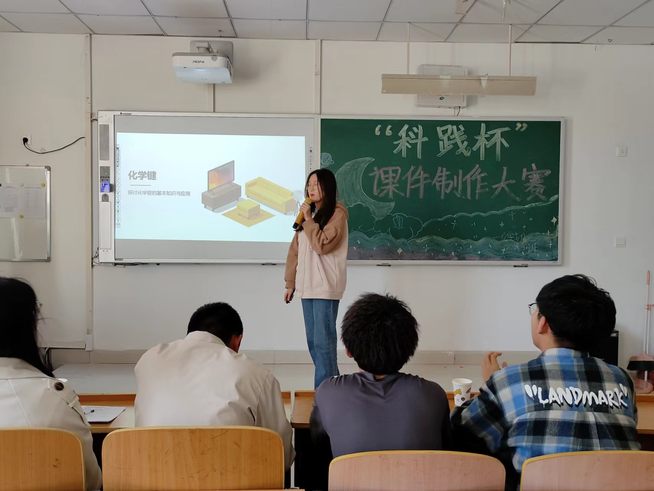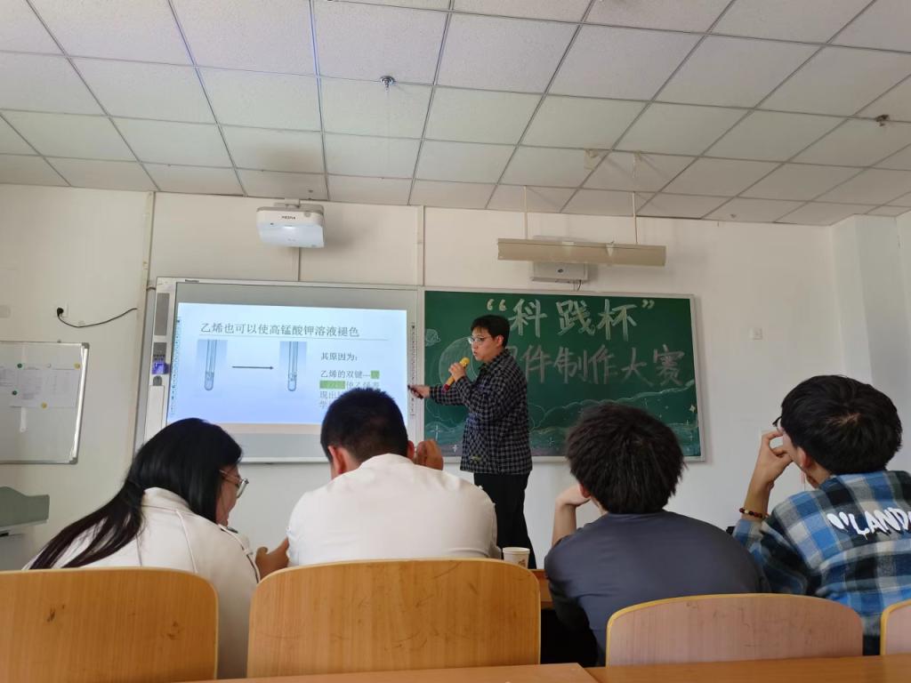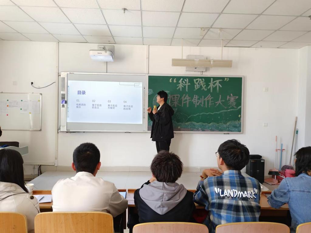 为了进一步提高学生的课件制作能力,激发学生在教学过程中运用现代教育技术手段的主动性、积极性和创新性,培养高素质、全方位的现代化教育人才,全面锻炼和提高同学们的综合素质。化学与化工学院于2024年4月11日下午在逸夫楼103举办“科践杯”课件制作大赛。