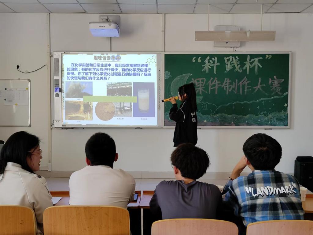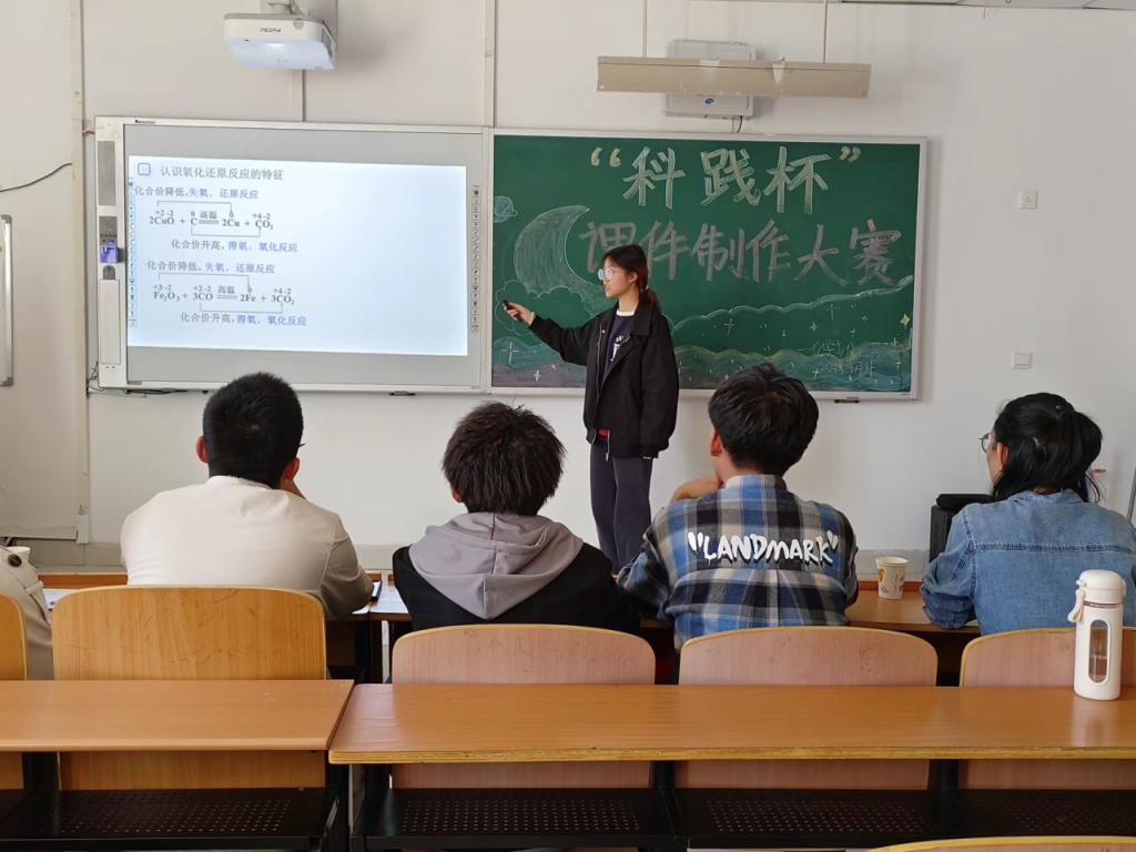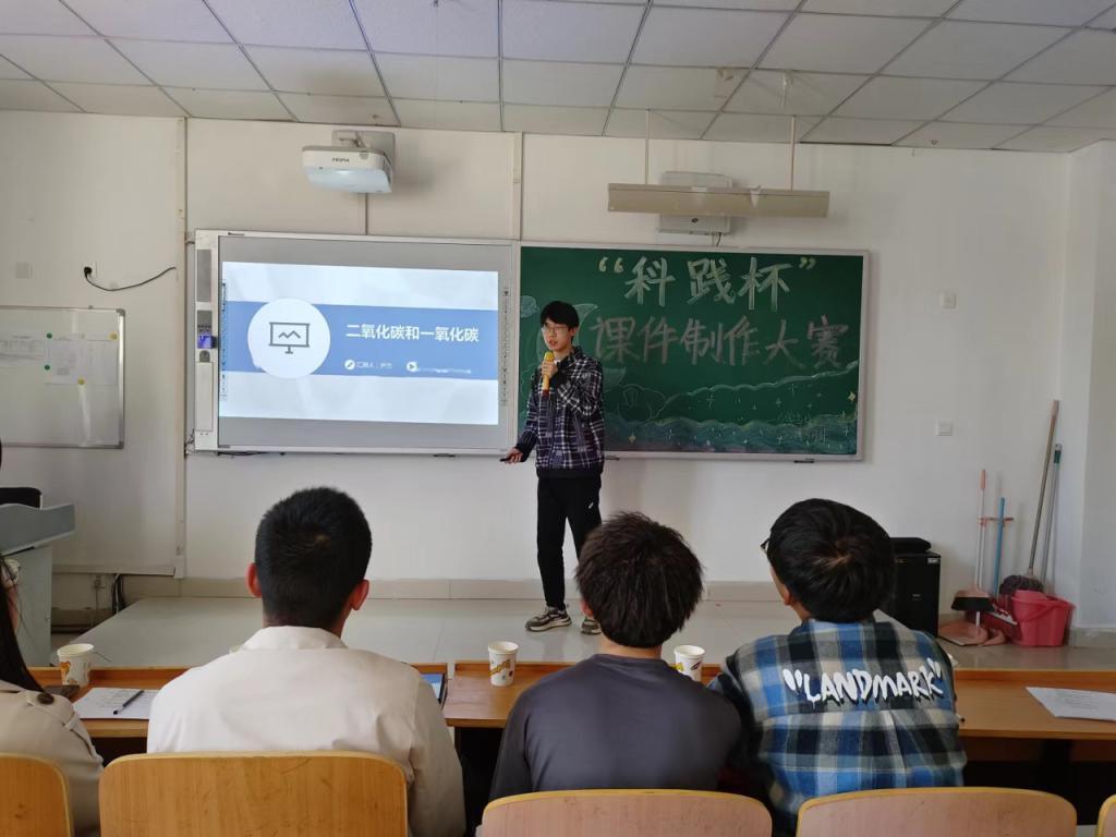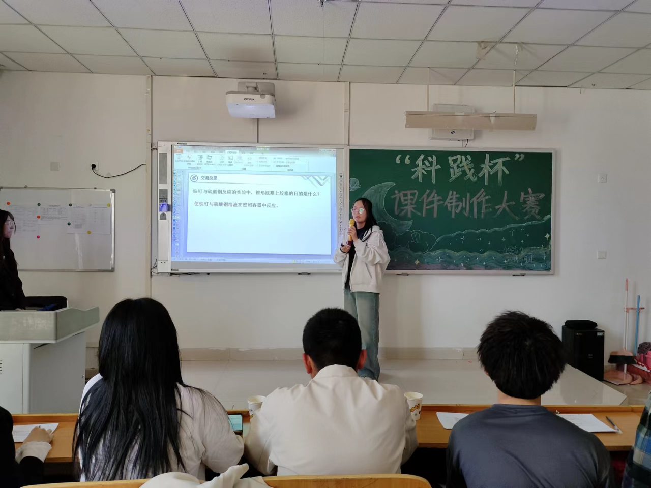 为了进一步提高学生的课件制作能力,激发学生在教学过程中运用现代教育技术手段的主动性、积极性和创新性,培养高素质、全方位的现代化教育人才,全面锻炼和提高同学们的综合素质。化学与化工学院于2024年4月11日下午在逸夫楼103举办“科践杯”课件制作大赛。