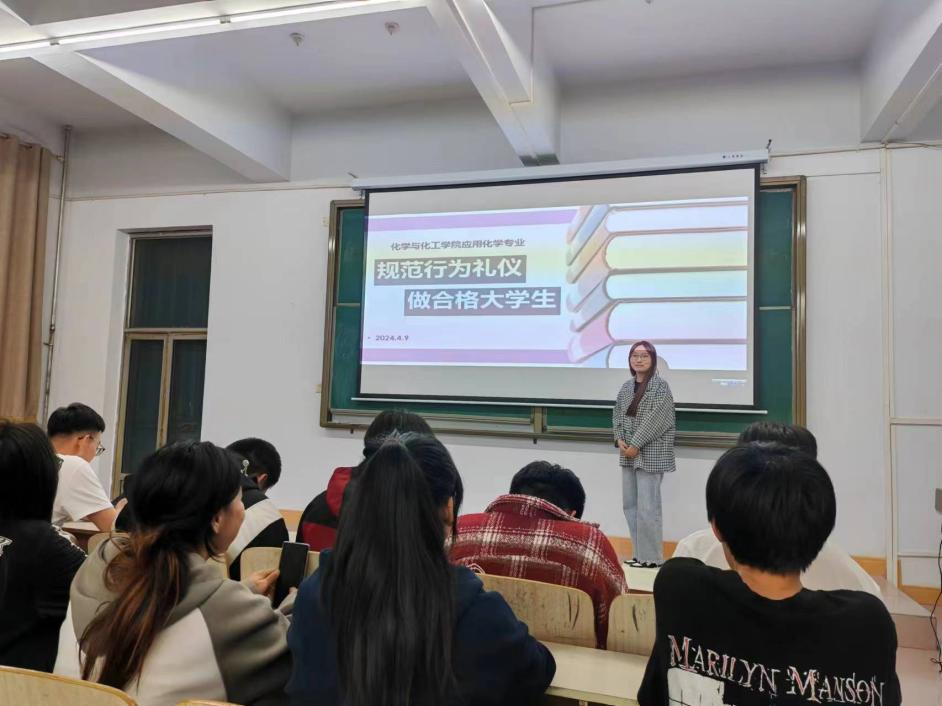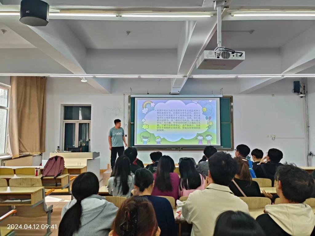 按照学校要求,为充分发挥主题班会的载体作用和育人功能,进一步将大学生思想政治教育工作做精、做细、做实,提高学生对日常行为规范重要意义的认识,营造积极向上的学习、生活氛围。我院结合实际,以班级为单位,于本学期第七周(4月8日——4月14日)开展了行为规范教育主题班会。