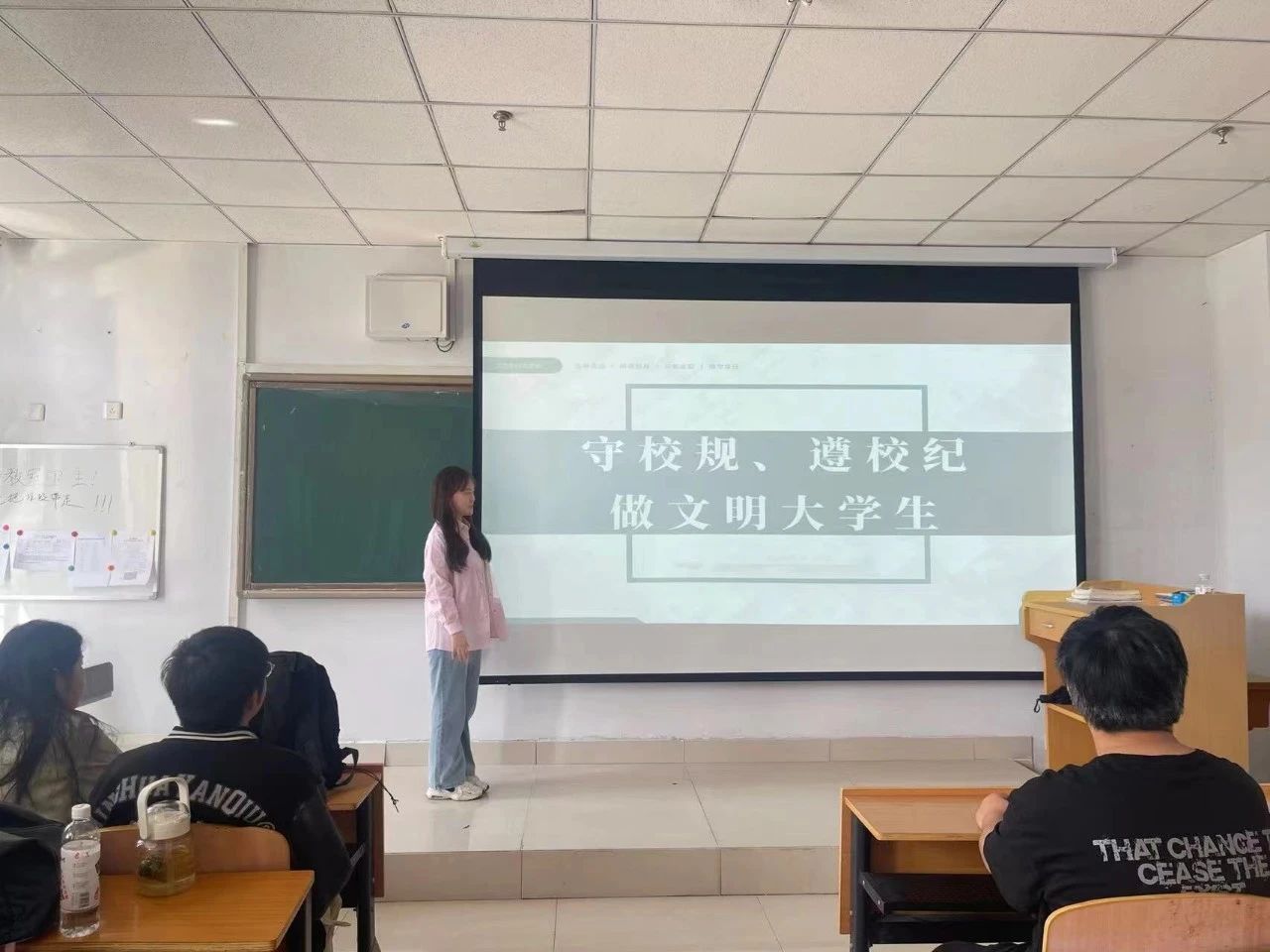 班会重点围绕“规范行为礼仪,做合格大学生”的主题,教育引导同学们树立正确的人生观,更好地了解学校管理规定并严格执行,发挥学生干部榜样示范作用,营造良好和谐的校园氛围。班会通过PPT课件、集中培训《2026世界杯官方合作网站学生行为规范》、专题讨论、经验交流、视频观看、案例警示、知识竞赛等方式进行,融思想性、趣味性、知识性、教育性为一体,最大限度地调动学生的参与热情,做到寓教于乐,寓教于实践。