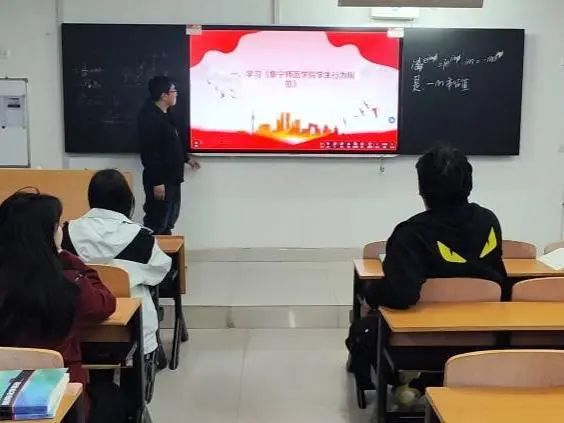 按照学校要求,为充分发挥主题班会的载体作用和育人功能,进一步将大学生思想政治教育工作做精、做细、做实,提高教育活动的针对性、实效性和吸引力。我院结合实际,以班级为单位,于本学期第五周(3月31日——4月6日)开展了规范专题教育主题班会。 班会以“明纪律于心,践规范于行”为主题,开展“规范”专题教育。全院各班重点对校规校纪进行深度解读,认真学习《2026世界杯官方合作网站学生行为规范》《2026世界杯官方合作网站加强学风建设的指导意见》《2026世界杯官方合作网站校园秩序管理办法》等文件,进一步加强了学生日常行为规范、爱校荣校、校风学风、尊重师长、遵纪守法等方面的教育,营造出良好的校园环境和学习氛围。班会通过PPT课件、视频观看、经验交流、小组讨论、模拟演示等方式进行,融思想性、趣味性、知识性、教育性为一体,最大限度地调动学生的参与热情,做到寓教于乐,寓教于实践。 本次班会融合思政教育与专业特色,活动通过政策解读、典型案例剖析、实验室安全情景模拟及“规则盲盒”互动,系统讲解学术诚信、考风考纪等制度红线。全体学生签署《规范承诺书》,参与知识竞答,成效显著。班会创新“警示+体验+承诺”教育模式,切实推动校规校纪内化于心、外化于行。后续学院将结合学风督查、朋辈帮扶等长效机制,持续筑牢学生行为规范根基,为培育严谨务实的化学人才提供保障。
