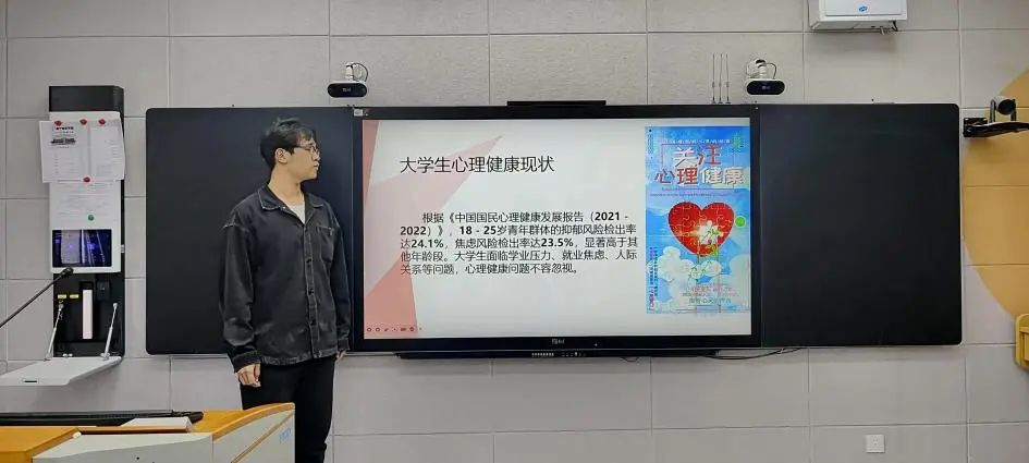 班会以“科普+互动”形式展开。辅导员和班主任结合大学生学业压力、人际交往等常见困扰,开展心理健康知识科普讲座,剖析心理调适技巧。各班级还创新设计“心理能量盲盒”“树洞信箱”等环节,鼓励学生匿名倾诉烦恼、传递温暖寄语。2022级学生张某分享道:“‘解忧杂货铺’活动让我学会用积极视角看待问题,懂得了关爱自我是成长的第一步。”