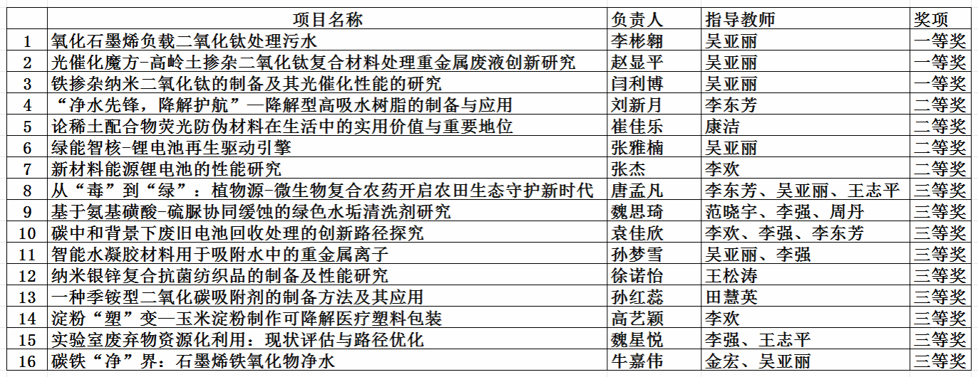 化学与化工学院多项学生作品在学校2025年“挑战杯”大学生课外学术科技作品竞赛中获奖