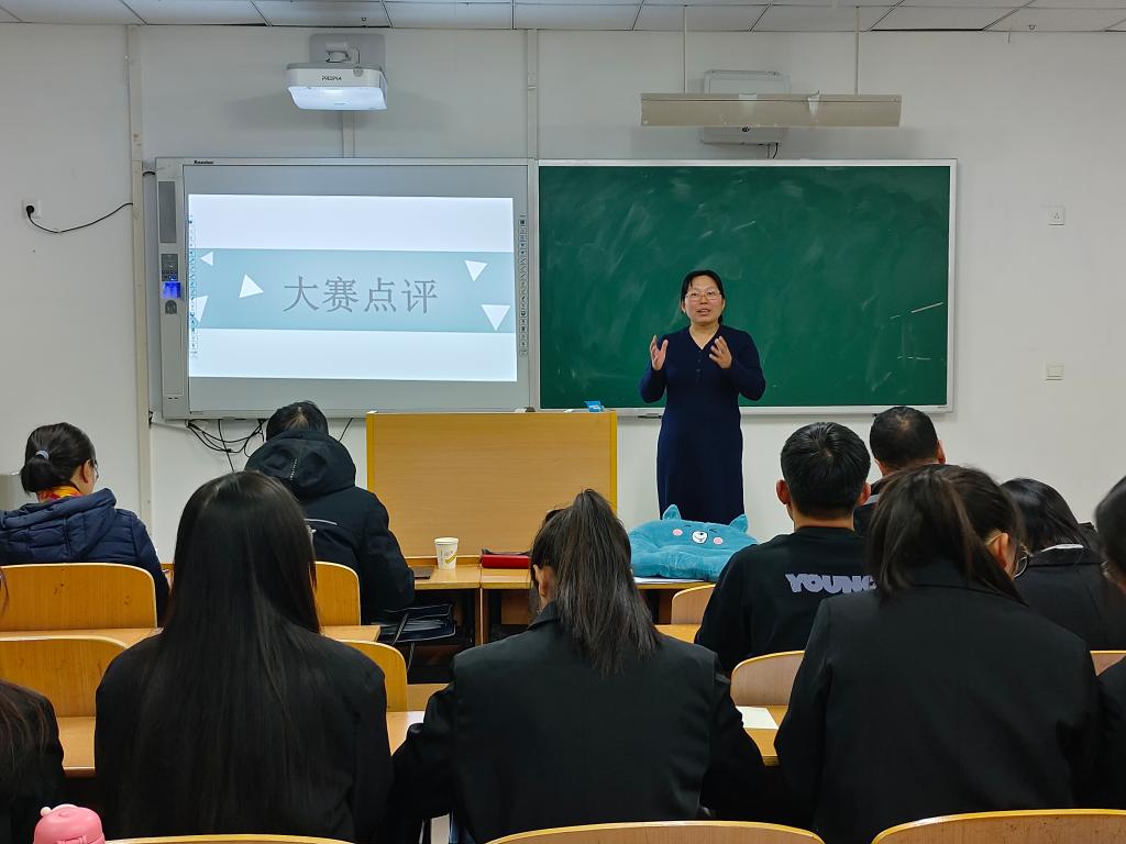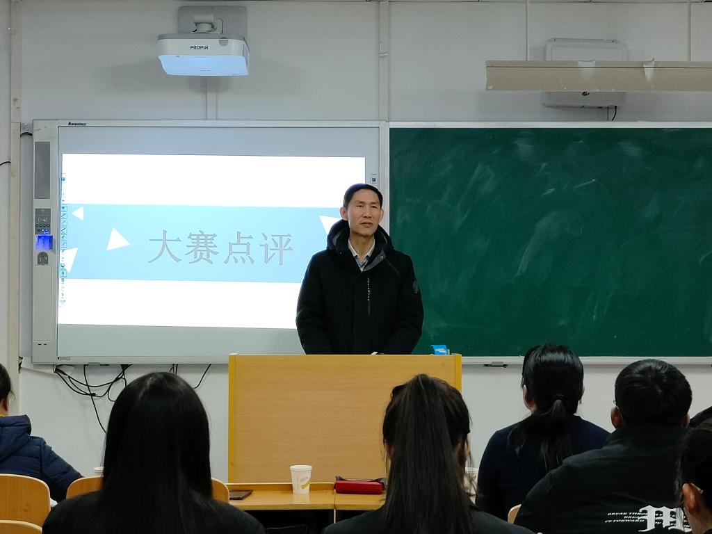 担任本次比赛的评委有赵有军、王凤英、王志平、王志平(女)、任庆云五位老师。比赛结束后,任庆云老师进行点评,帮助同学们了解自己在比赛中表现出的优势和不足。学院党总支书记赵有军就本次师范生教学技能大赛的意义作了总结。