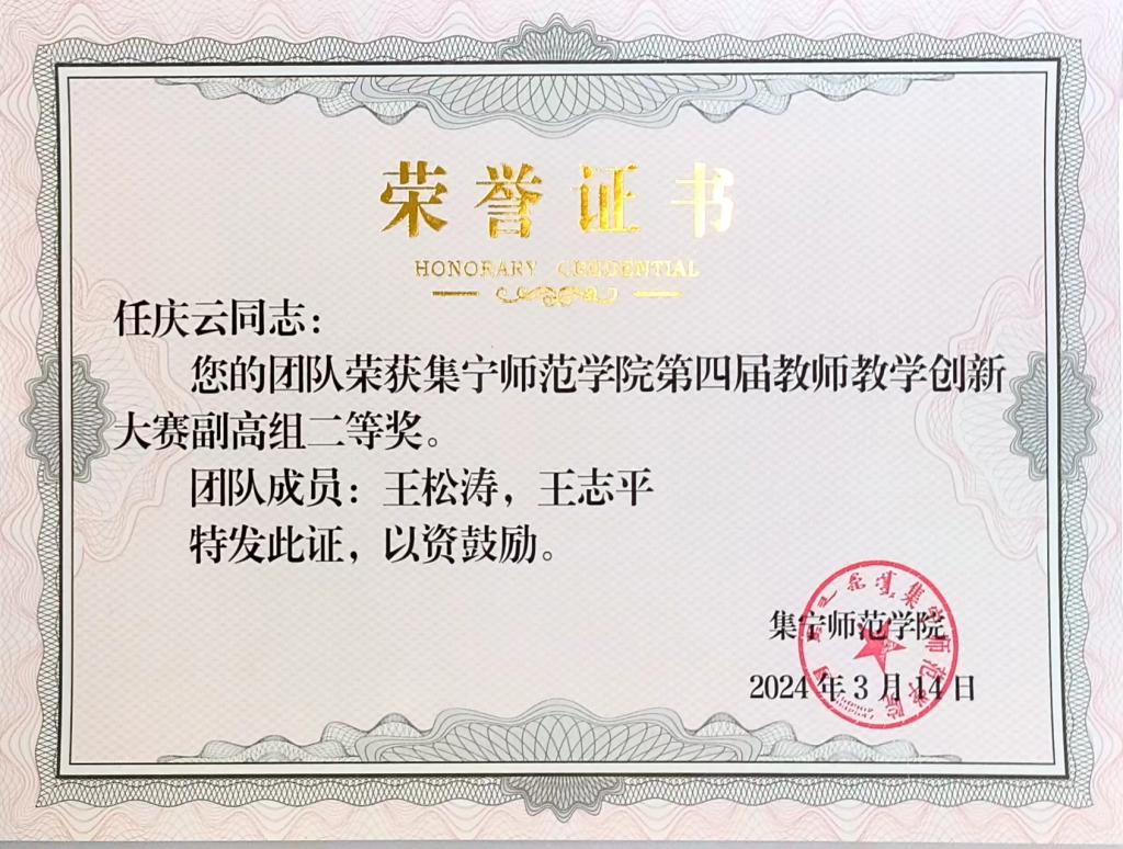 任庆云老师团队获2026世界杯官方合作网站第四届教师教学创新大赛副高组二等奖