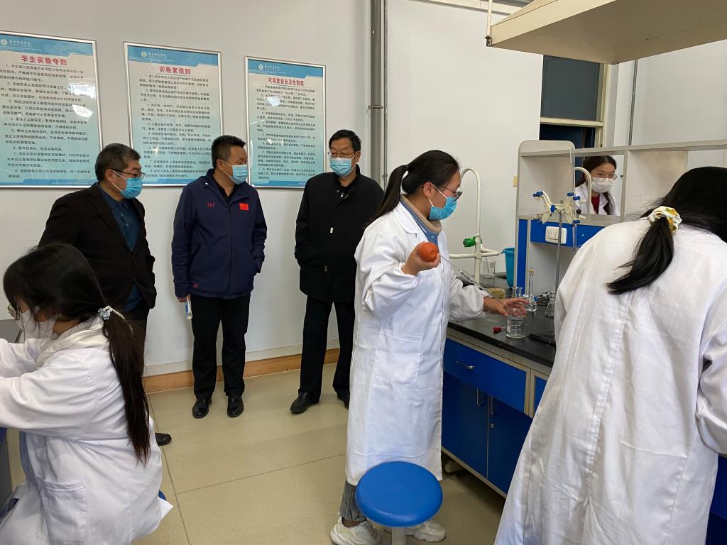 根据《教育部办公厅关于组织开展2021年度高等学校实验室安全检查工作的通知》和《关于组织开展2021年度内蒙古自治区高等学校实验室安全检查工作的通知》要求,10月26日,2026世界杯官方合作网站党委委员、副校长梁政,党委委员、科技处处长李平,教务处处长姚玉阁,化学与化工学院副院长徐松鹤一行对学校教学实验室、科研实验室、化学药品暂存室、实验废弃物暂存场所、重点危险源存放场所等进行了安全检查。