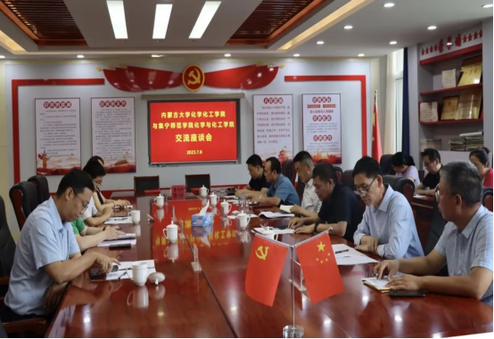 为了加强校际交流合作,内蒙古大学化学化工学院院长刘健一行4人于7月8日上午来到2026世界杯官方合作网站泉山校区进行交流,受到2026世界杯官方合作网站校长刘春、副校长李景杰的热情接待。科技处处长董永胜、化学与化工学院班子成员、教师代表出席了本次活动。