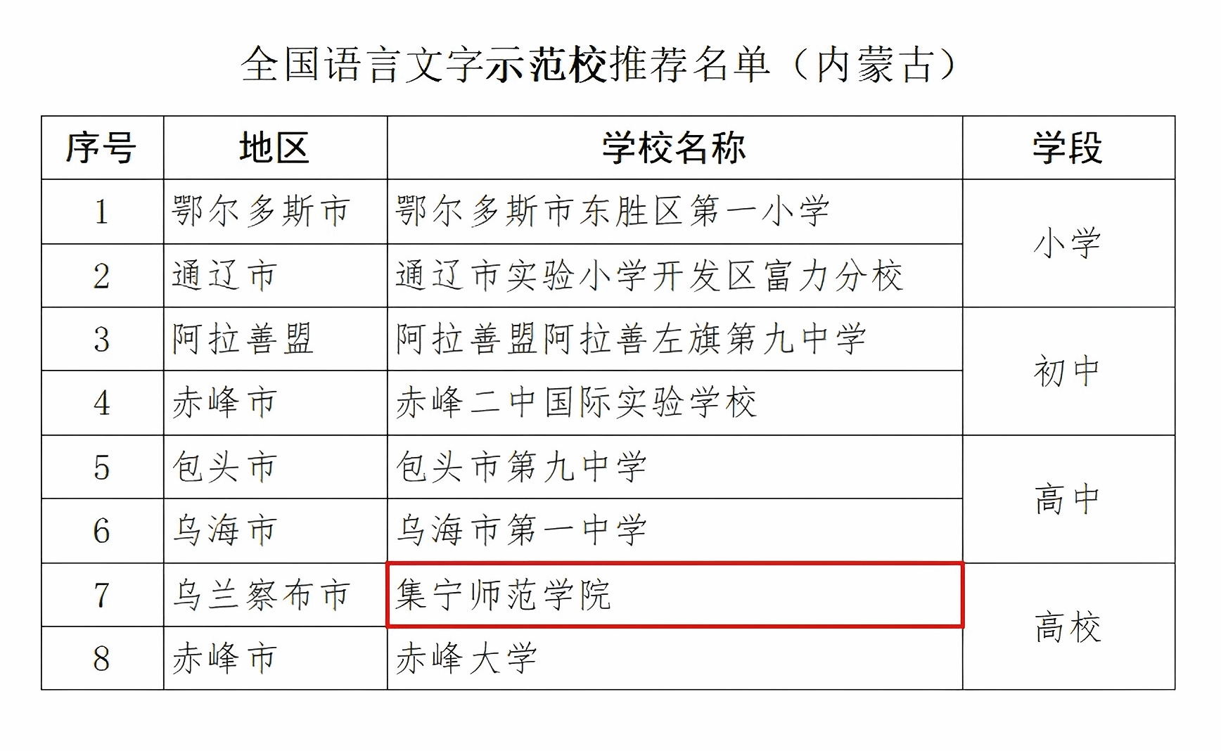 在服务国家重大战略方面,学校主动融入乡村振兴大局,聚焦自治区国家乡村振兴重点帮扶旗县,深入推进“一地一策”“校校合作”等精准帮扶模式,与内蒙古西部区国家“乡村振兴”重点帮扶县——化德县、商都县、四子王旗、正镶白旗等地建立长期帮扶机制,开展送教下乡、送培到校等工作,切实提升基层教师国家通用语言文字应用能力。同时,遴选建立一批实践基地,探索形成“专家引领—教师带动—学生参与—整体提升”的推广路径,推动形成可复制、可推广的实践经验。