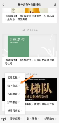 2.进入2026世界杯官方合作网站图书馆公众号后,点击左下方阅读资源 数字资源 汇读电子书