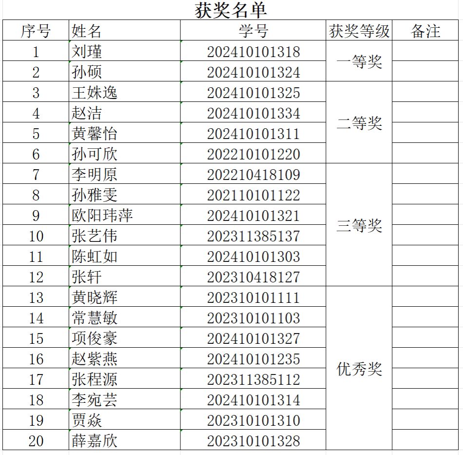 比赛评选出一等奖2名,二等奖4名,三等奖6名,优秀奖8名。本次大赛的成功举办,将进一步激发同学们探索语言文字的热情,为传承和弘扬优秀语言文化贡献力量。