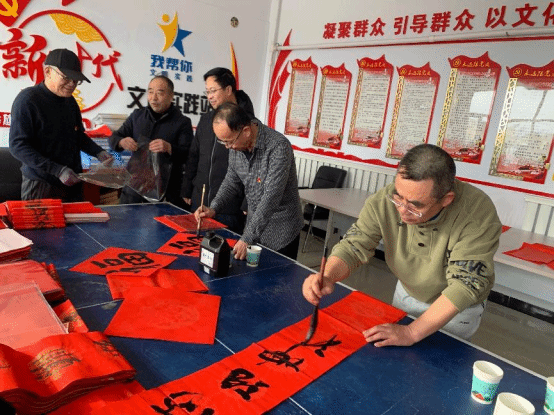 世界杯官网退休教师曹宇教授、田振国教授、王俊平教授等为村民们现场书写春联,一幅幅喜庆的对联和火红的“福”字,为村民送上了节日的祝福。