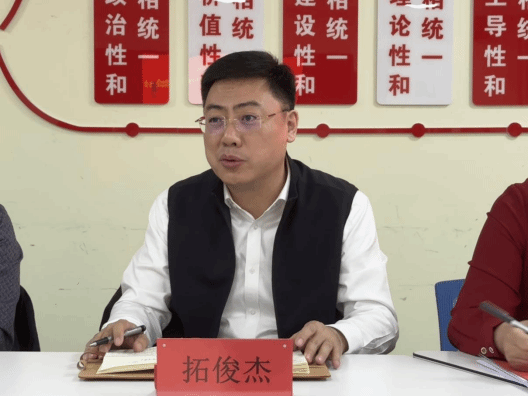 拓俊杰鼓励思政课教师牢记习近平总书记政治要强、情怀要深、思维要新、视野要广、自律要严、人格要正的要求,担负起思政课教师的职责和使命,同学们要学习好、践行好习近平总书记重要讲话精神,努力成长为堪当民族复兴重任的时代新人。