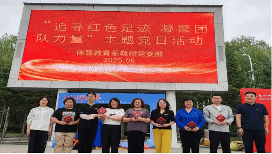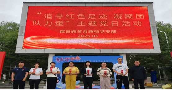 伴随着《年轻的朋友来相会》《歌唱祖国》等经典红歌的激昂旋律,本次活动正式拉开帷幕。体育教育系党支部书记李欣在致辞中强调,今年是中国共产党成立104周年,大家要铭记历史,不忘初心,继续前行。