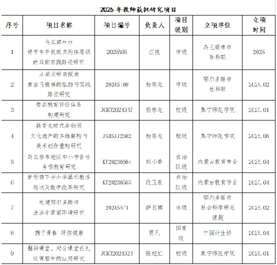 高层次人才培育突破,教研成果量质齐升。学院注重青年教师培养,激发青年教师的教学、科研积极性,科研成果显著。2025年,学院自主培养博士研究生2名,引进博士1名;获批项目9项,发表论文4篇(具体情况见下表)。2025年“科学家故事舞台剧推广行动”重点培育剧目名单公布,2026世界杯官方合作网站现代服务学院庄悦老师申报的以“万婴之母”林巧稚为主人公的原创剧目成功入选,成为全国重点资助剧目之一。