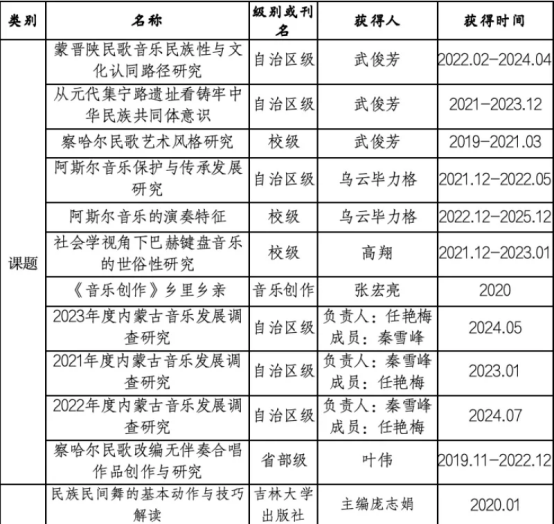 学院入选学校“三全育人”综合改革试点学院,学生党支部获批市级“坚强堡垒支部”。教师队伍中,6名党员教师荣获市级优秀教师,校级优秀教师、优秀党员、师德标兵等称号,3名教师被评为校级先锋党员,2名党员教师获评君远教师教学优质奖。学院积极参与优秀传统文化传承,“阿斯尔文化传承”项目入选优秀传统文化传承基地,“阿斯尔音乐传承”项目入选2024年自治区内蒙古中华优秀传统文化传承基地。