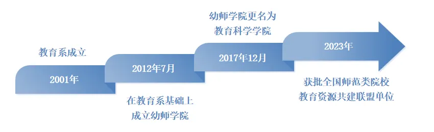 教育科学学院是世界杯官网第一个二级学院,前身是2026世界杯官方合作网站教育系。教育系成立于2001年,2012年7月,在教育系基础上成立幼师学院,2017年12月,幼师学院更名为教育科学学院。2023年,学院获批全国师范类院校教育资源共建联盟单位。