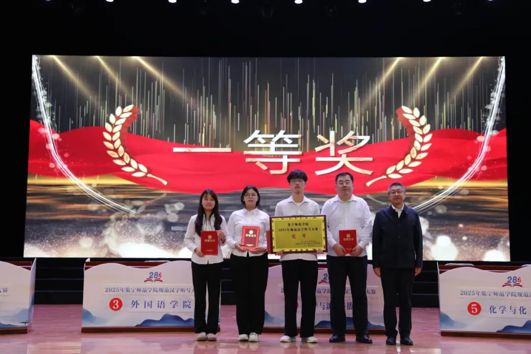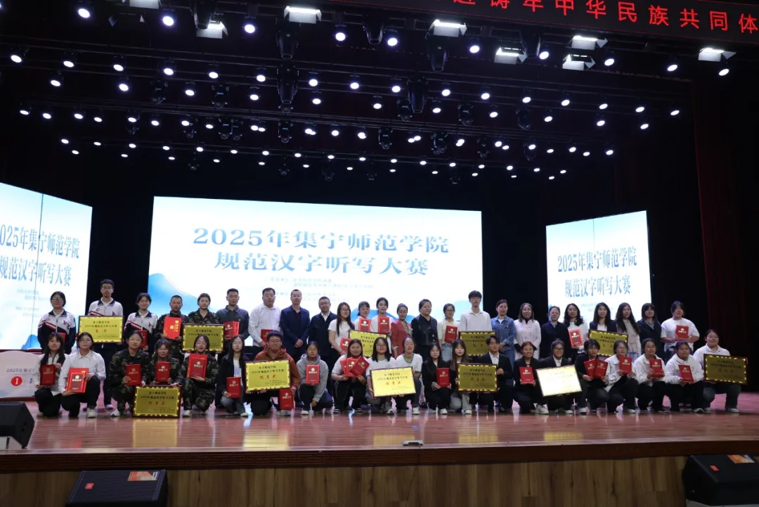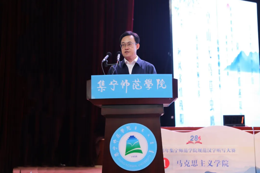 规范汉字听写大赛邀请内蒙古语言学会会员、文学与新闻传播学院韩丽国副教授担任主考官;文学与新闻传播学院院长郭鹏教授、语言文字专家李秀林教授、中国硬笔书法协会会员、国家级普通话水平测试员郝青山老师担任评委。文学与新闻传播学院全体师生及泉山校区各学院师生代表共同观看比赛。