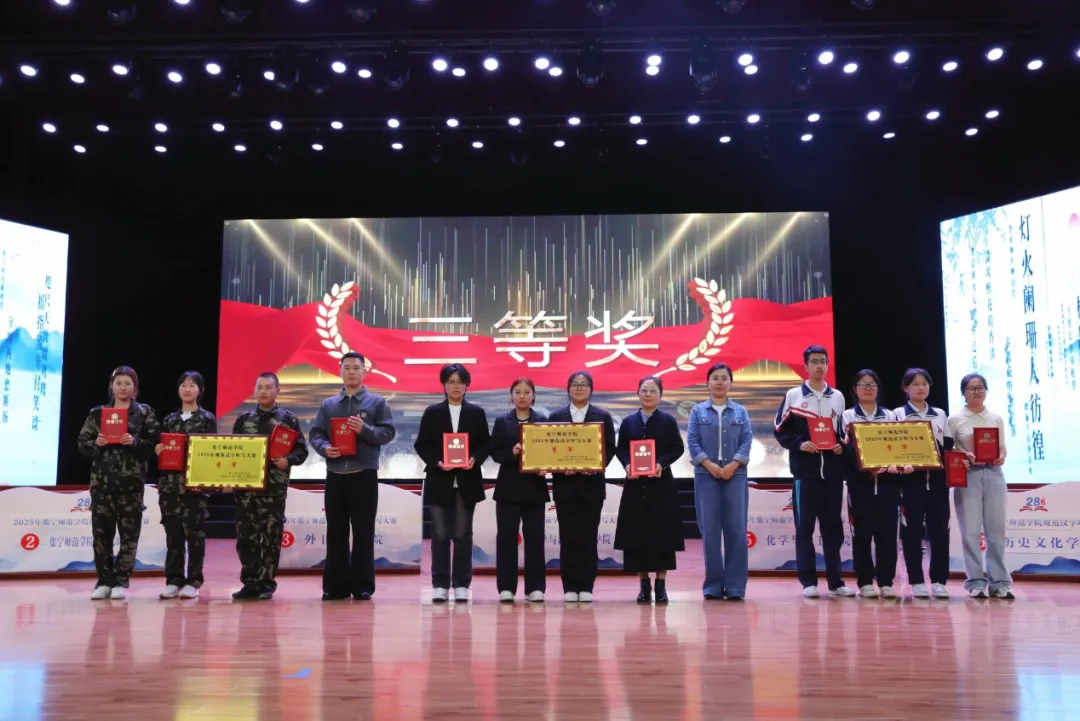 经过各代表队激烈角逐,文学与新闻传播学院代表队荣获冠军;外国语学院、教育科学学院代表队荣获亚军;历史文化学院、化学与化工学院、附属实验中学代表队荣获季军;马克思主义学院、地理科学与规划学院、美术与设计学院、生命科学与技术学院、音乐与舞蹈学院、经济与管理学院代表队荣获优秀奖。文学与新闻传播学院李明原、历史文化学院宣华磊、马克思主义学院赵雪分获个人赛冠亚季军。冠亚季军团队指导教师荣获优秀指导教师奖。