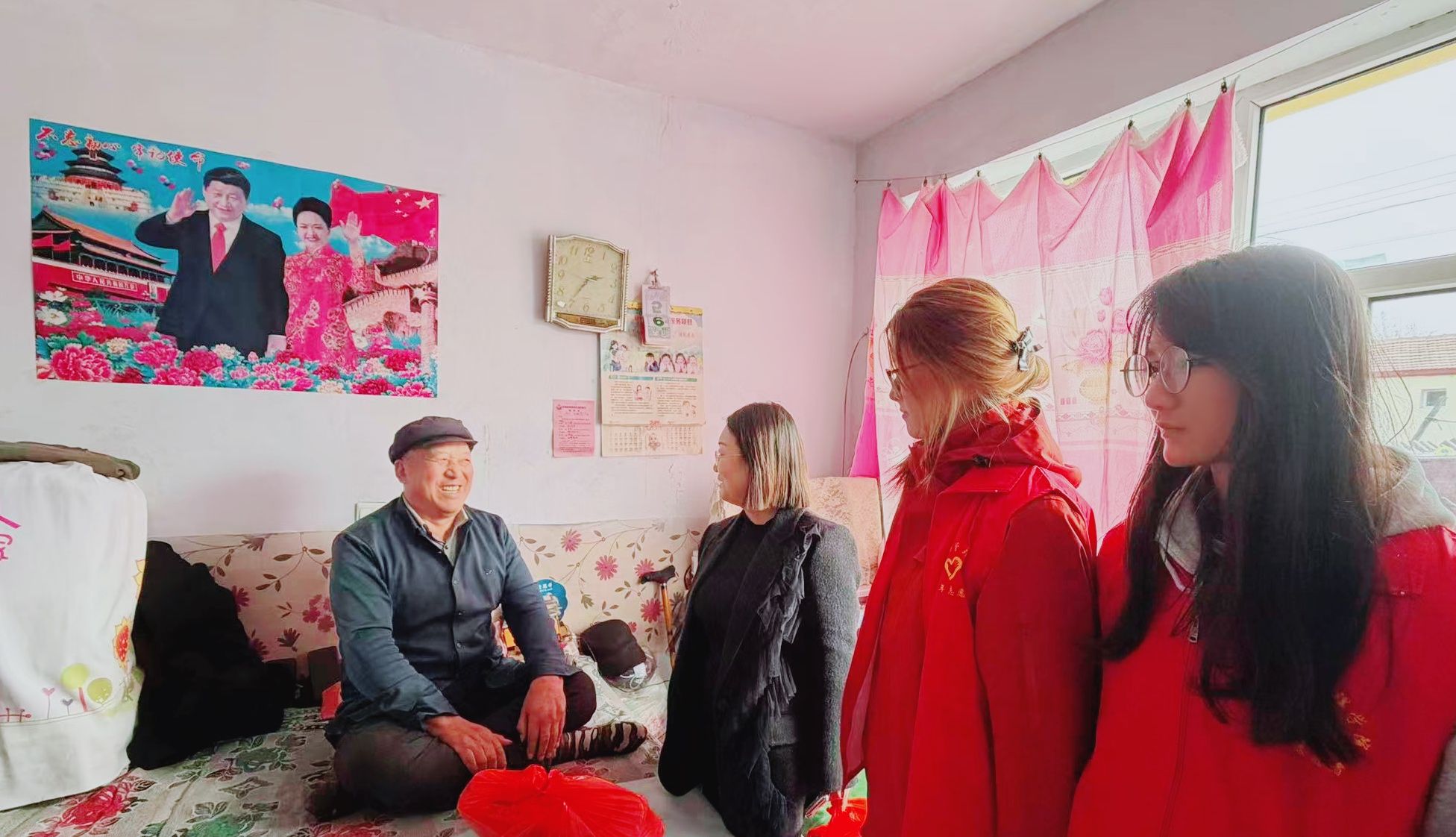 世界杯官网师生代表与化德县政府副县长苗雯娟、村“两委”干部一同开展走访慰问,为困难群众送上慰问品,详细询问其身体状况、生活需求及实际困难,鼓励他们坚定信心,依靠政策支持与自身努力改善生活。