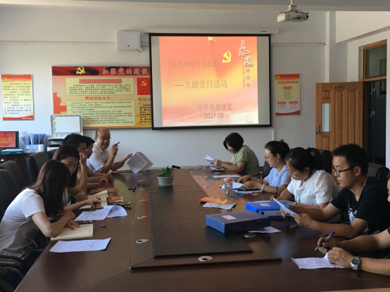 8月3日,经管系党总支开展8月份主题党日活动,集中观看大型政论专题片《将改革进行到底》的第四集《维护社会公平正义》和第五集《延续中华文脉》。经管系党总支书记周关锁、系主任刘志贤和全体教工党员观看了专题片。