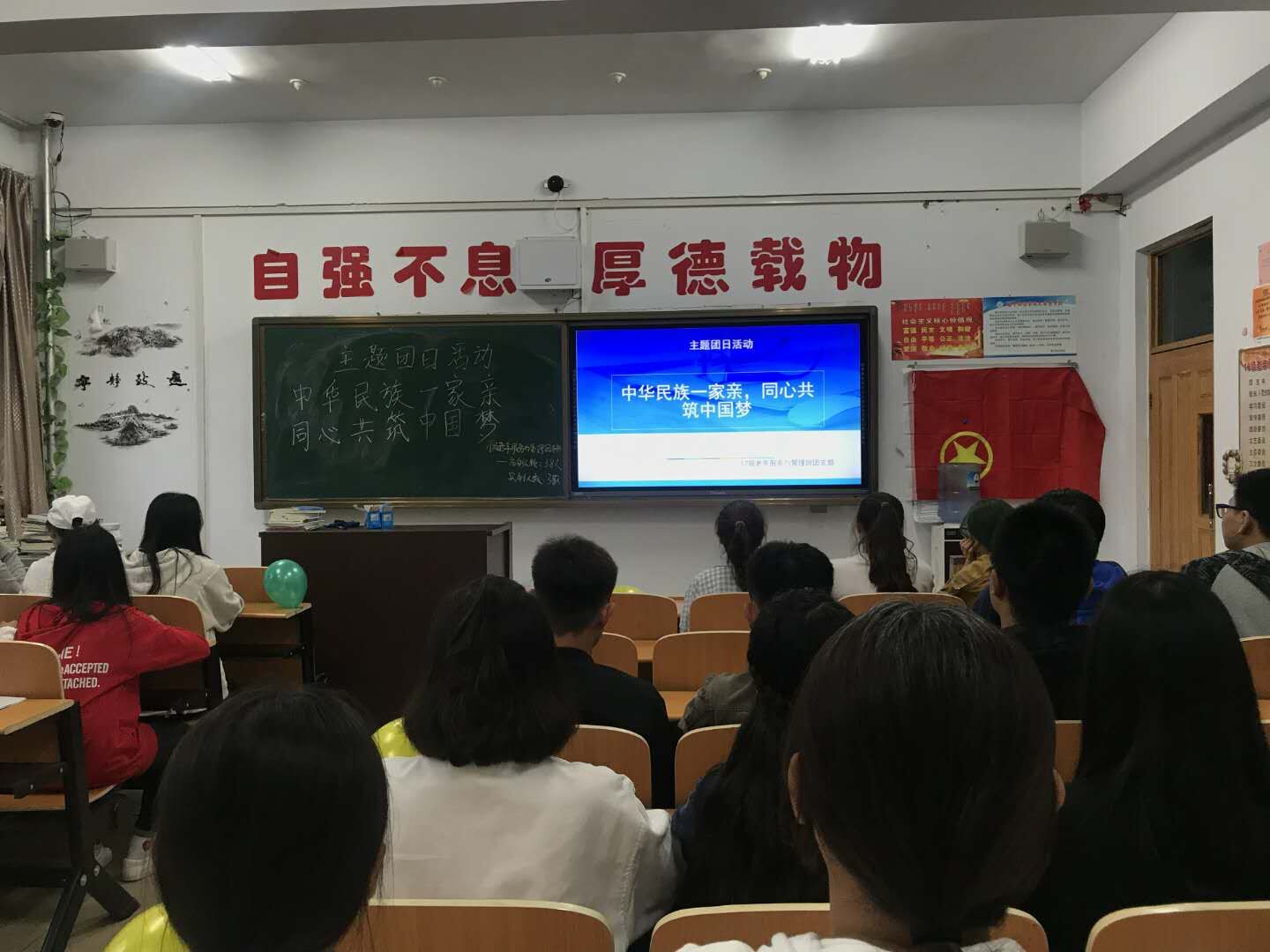 为深入学习贯彻习近平新时代中国特色社会主义思想和党的十九大精神,深入贯彻落实中央民族会议精神,认真贯彻落实自治区党委关于民族团结工作的部署要求,经济与管理学院于5月25日下午3点在主教楼218教室开展了“中华民族一家亲同心共筑中国梦”主题团日活动,我院大一年级全体学生参加了此次活动。