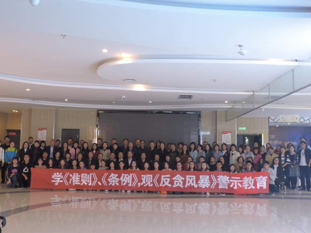 为全面贯彻落实从严治党要求,加强党风建设,发挥大众传媒的优势,全面推进广大师生学习党的政治建设、思想建设、组织建设、作风建设、纪律建设,深入推进反腐败斗争。经济与管理学院、文学院、现代服务学院、外国语学院、政史学院、纪检委、科研设备处、工会全体党员于9月20日下午2点,在维多利联合举行“学《准则》、《条例》,观《反贪风暴》警示教育”。