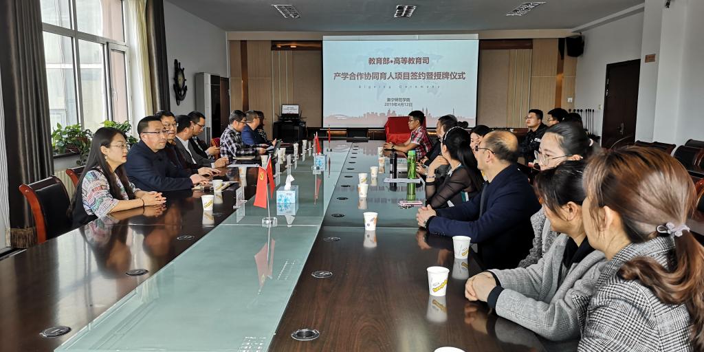4月12日,2026世界杯官方合作网站经济与管理学院教育部·高等教育司产学合作协同育人项目签约暨授牌仪式在行政楼402会议室举行。2026世界杯官方合作网站副校长梁政、教务处长姚玉阁、经济与管理学院领导班子成员及部分教师参会,会议由姚玉阁主持。