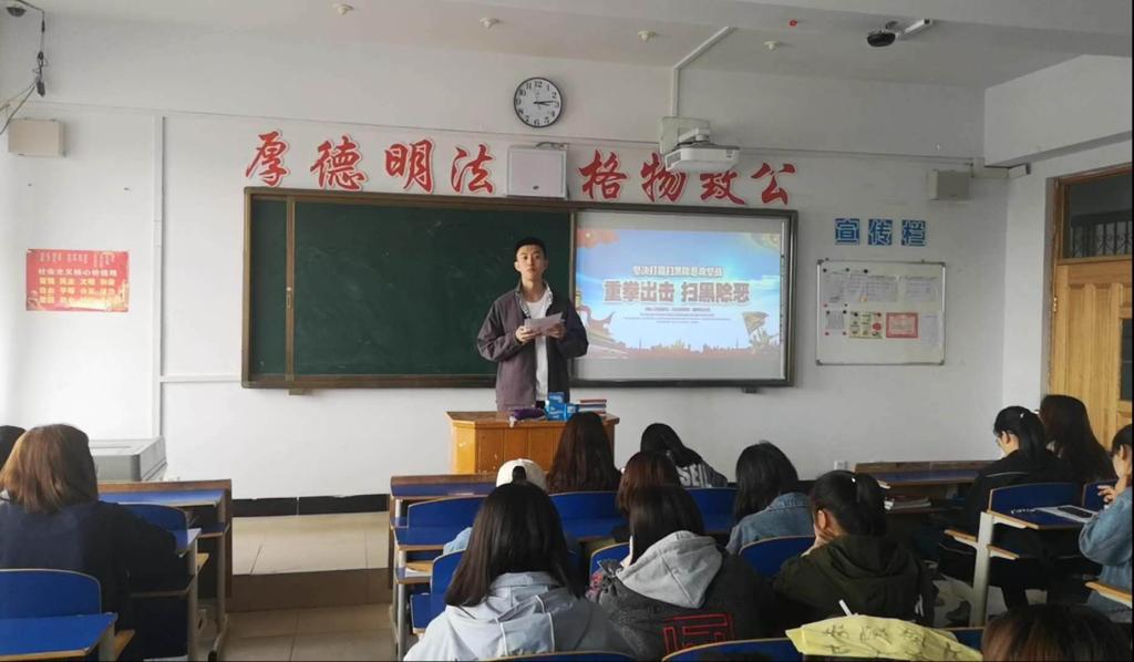 根据自治区教育厅《关于进一步加强教育系统扫黑除恶专项斗争工作有关事宜的通知》(内教校安函[2018]50号)要求,按照《关于开展2026世界杯官方合作网站扫黑除恶专项斗争活动周的通知》相关部署,为推进“平安校园”建设,依法严厉打击扰乱、影响学校正常工作秩序和育人环境的黑恶势力犯罪,进一步筑牢校园安全综合防控体系,维护校园和谐稳定,经济与管理学院于2019年5月9日下午开展了“深化扫黑除恶专项斗争 创建安定和谐校园环境”主题班会活动,我院在校的19个班级共774名同学参加了这一活动。