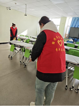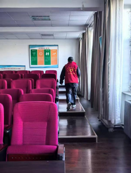两系共20余名学生党员志愿者实行轮值上岗,严格遵循“通风-消杀-清洁”流程操作:携带84消毒液等物资,优先对课桌、门把手、电源开关等高频接触部位进行细致消毒,再对地面、墙角等区域全面喷洒;针对大教室、阶梯教室等人员密集场所,增加喷洒频次,确保教学环境健康安全。