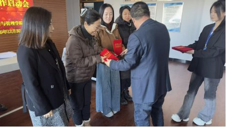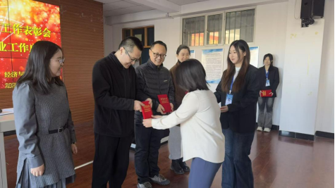 会上,经济与管理学院党总支副书记赵鹏宇首先宣读了表彰决定,对在2025年度就业与创新创业工作中表现突出的先进个人和集体予以正式表彰。在热烈的掌声中,与会领导为获奖个人和集体颁发荣誉证书,对他们的辛勤付出和优异成绩表示肯定与祝贺。