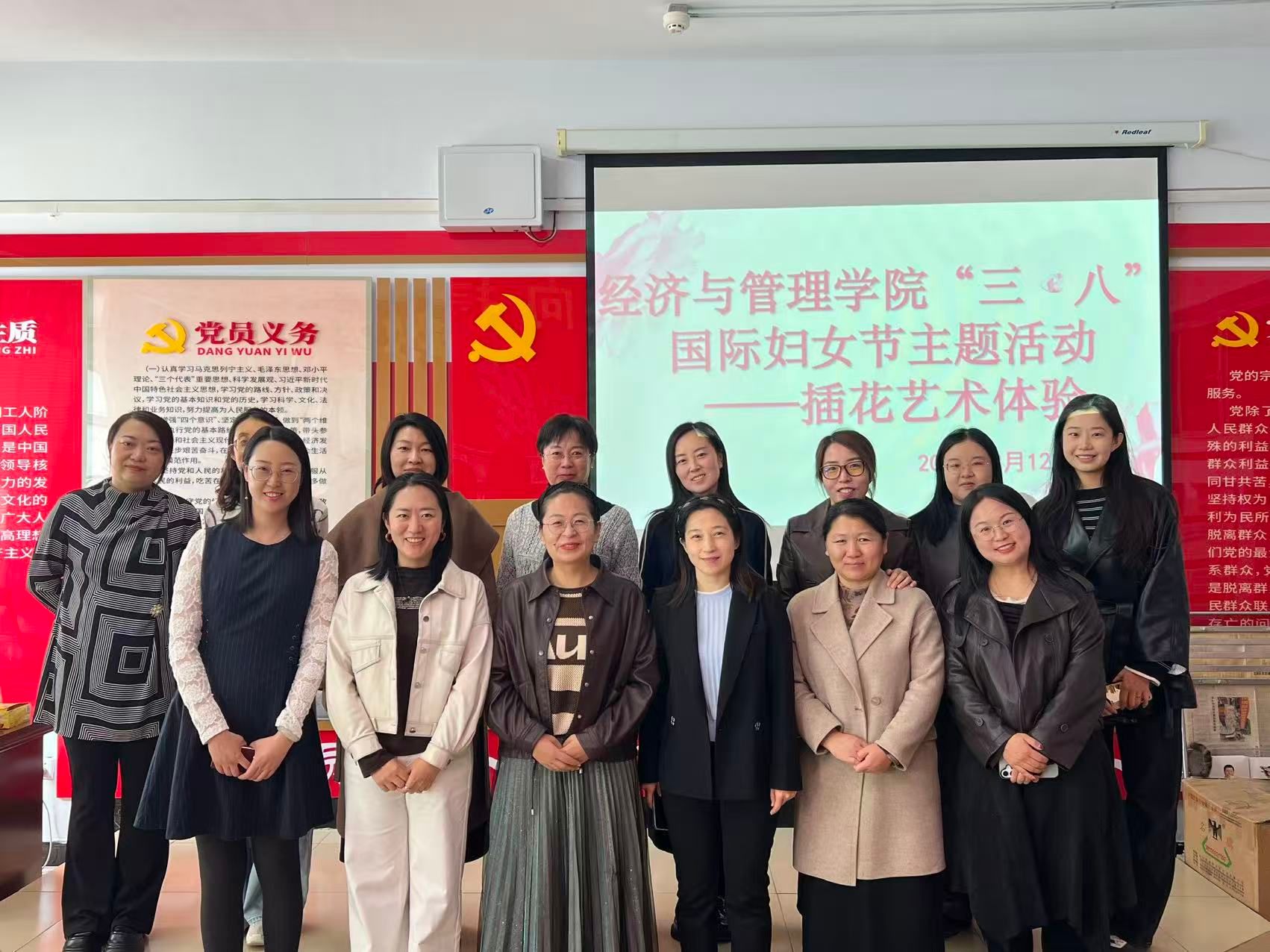 为庆祝“三八”国际妇女节,致敬学院女教职工的辛勤付出,丰富女教职工精神文化生活,3月12日上午,经济与管理学院在主教楼202会议室成功举办“花艺传情,巾帼芳华”插花艺术体验活动。学院全体女教师欢聚一堂,在艺术与创意中共度温馨美好的节日时光。