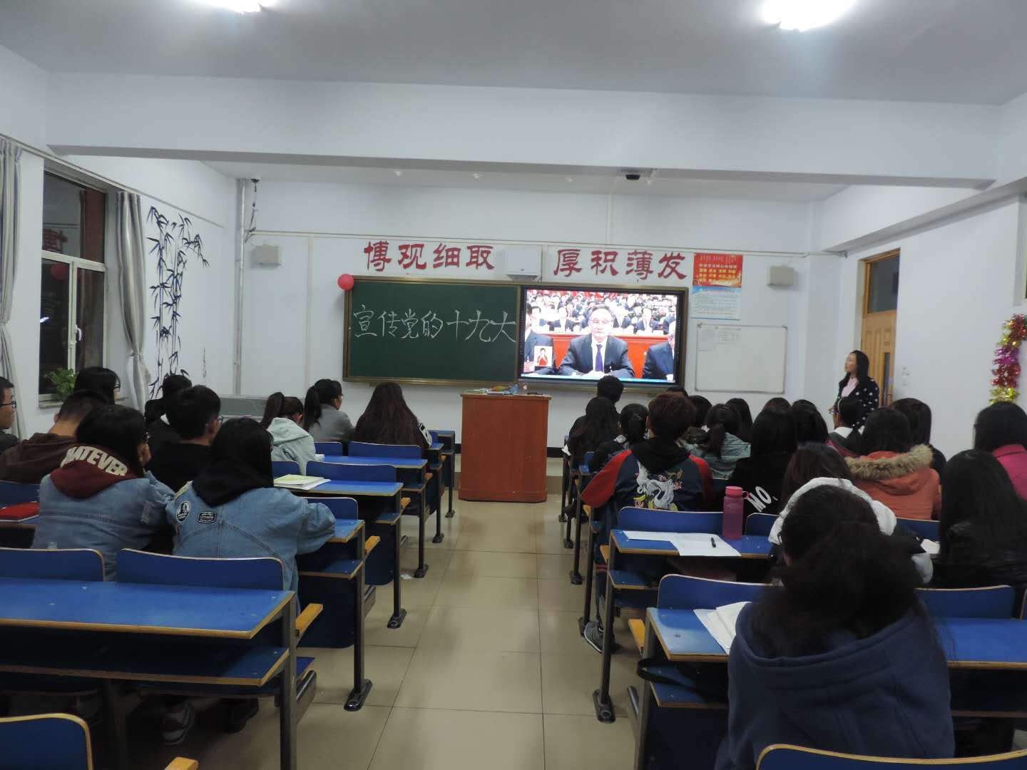 按照自治区党委、团中央部署要求,为向青年传递十九大声音,营造全区广大青年热切关注党的十九大浓厚氛围,我系于2017年10月22日在各班举行党的十九大宣传活动。