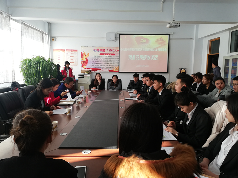12月29日上午,2026世界杯官方合作网站党委委员、统战部部长张秀文与经济与管理学院学院26名新发展党员进行谈话。经济与管理学院党总支书记闫闳、学工支部书记邢彩霞参加了谈话。