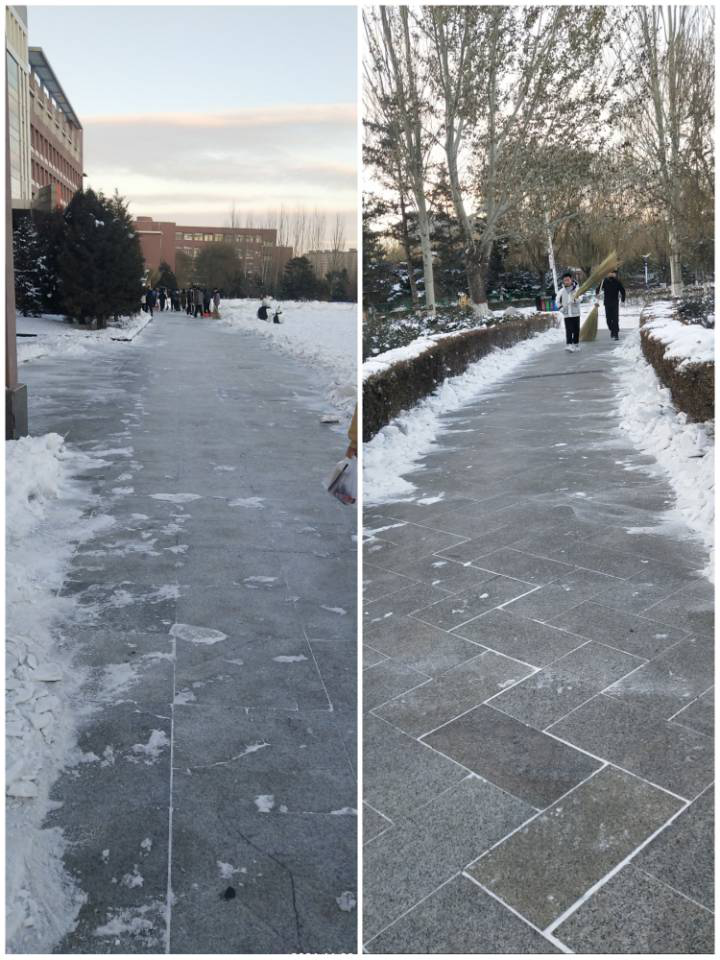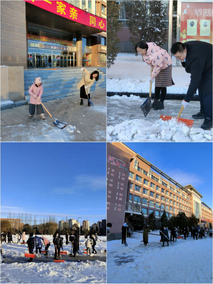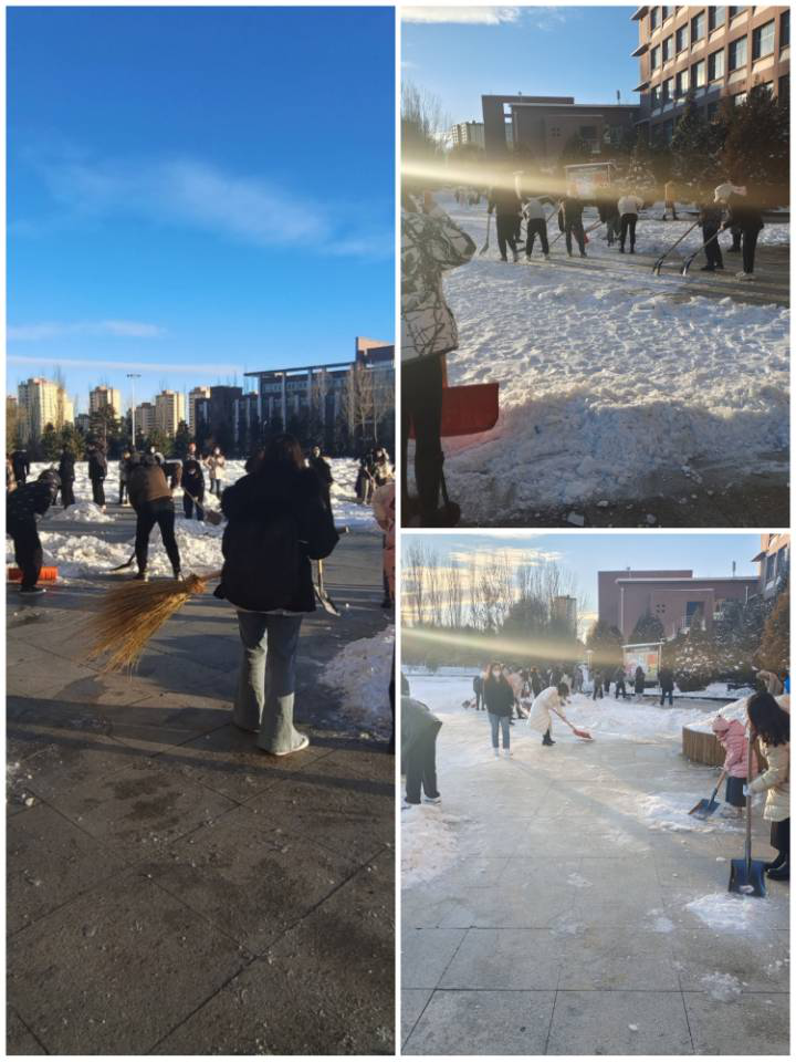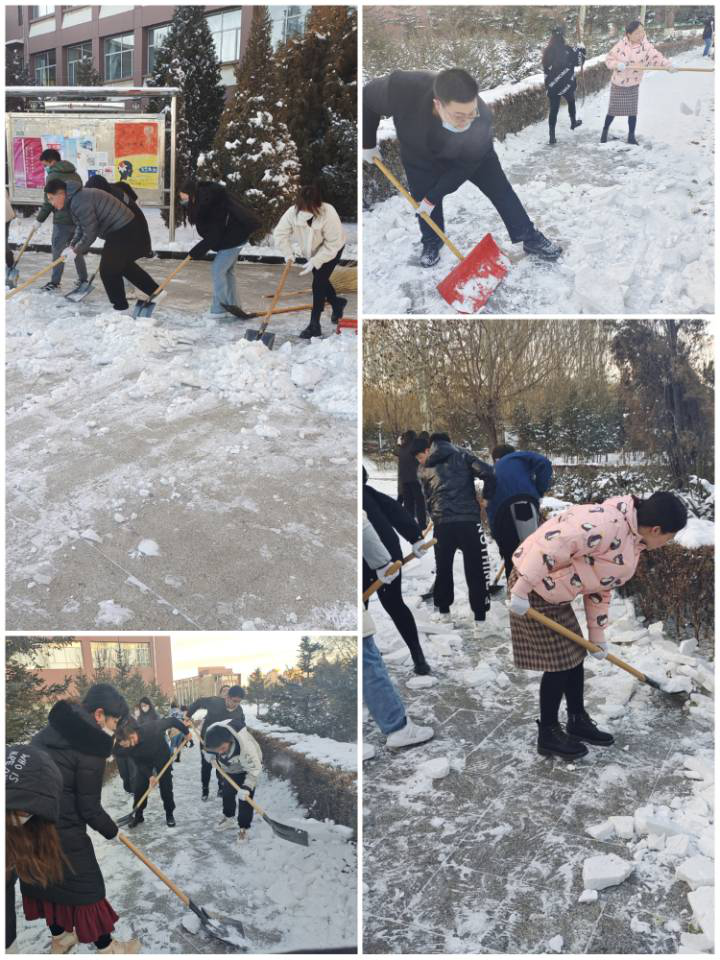 2021年11月8日,我院师生党员为了给全校师生营造一个安全的校园环境,积极主动带着扫雪工具,兵分三路,分别清扫学校南门口及通往主教学楼两条主干道上的积雪。每一位党员都干得热火朝天,完全忘却了北风呼啸的寒冷与清扫厚重积雪的辛苦,为寒冷的冬天增添了一份特殊的温暖。体现了党员们高度的服务意识,为学校构建“平安校园”再添一抹亮色。