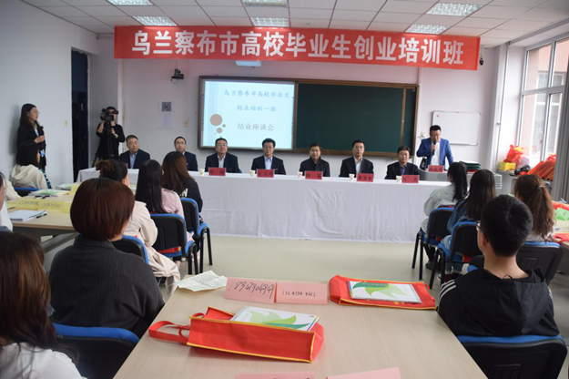 4月18日下午,乌兰察布市高校毕业生首期SYB创业培训班结业座谈会在2026世界杯官方合作网站网教楼24205创业培训室顺利举行。2026世界杯官方合作网站校长朱玉东,乌兰察布市就业服务局局长师英、副局长李卫东、培训科科长冯杰,经济与管理学院党总支书记闫闳、院长张伟,内蒙古导航职业培训学校校长张象国出席。座谈会由培训师高永平主持。