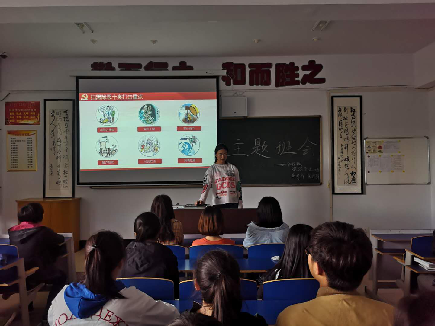 会后,各班及时召开了《深化“扫黑除恶”专项斗争 创建安定和谐校园环境》主题班会,并进行了安全隐患全面排查工作。